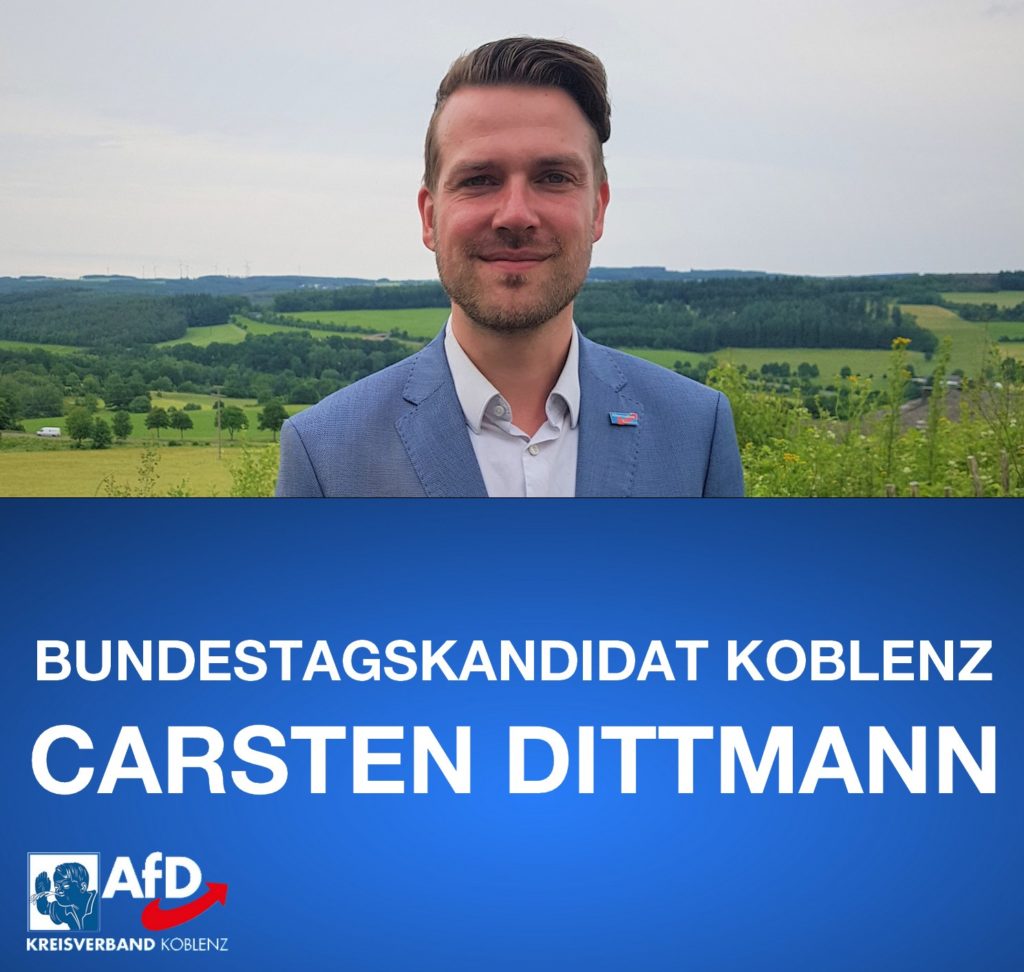 Der in Koblenz geborene Carsten Dittmann gilt innerhalb der AfD-Rheinland-Pfalz als gemäßigt und verfolgt einen koalitions- und regierungsfähigen Kurs und belegt auch den Landeslistenplatz 10 der AfD. Er absolvierte 2011 sein Abitur am Sportgymnasium in Koblenz und hat ein betriebswirtschaftliches Studium mit dem Schwerpunkt Finanzen und Controlling als Master of Business Administration abgeschlossen. Aktuell arbeitet er als politischer Referent im Hessischen Landtag.